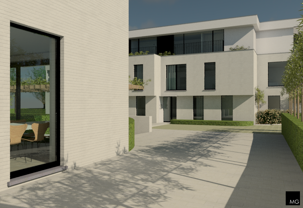 4 bestaande woningen worden afgebroken en vervangen door een appartementsblok aan de straatkant en door de diepte van het perceel een appartementsblok in tweede lijn.