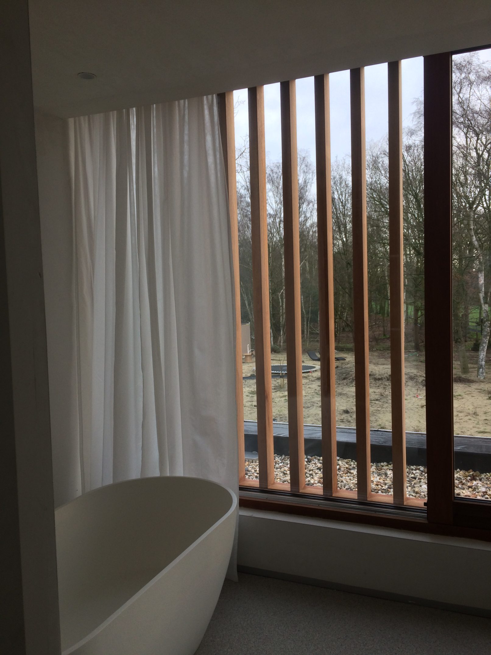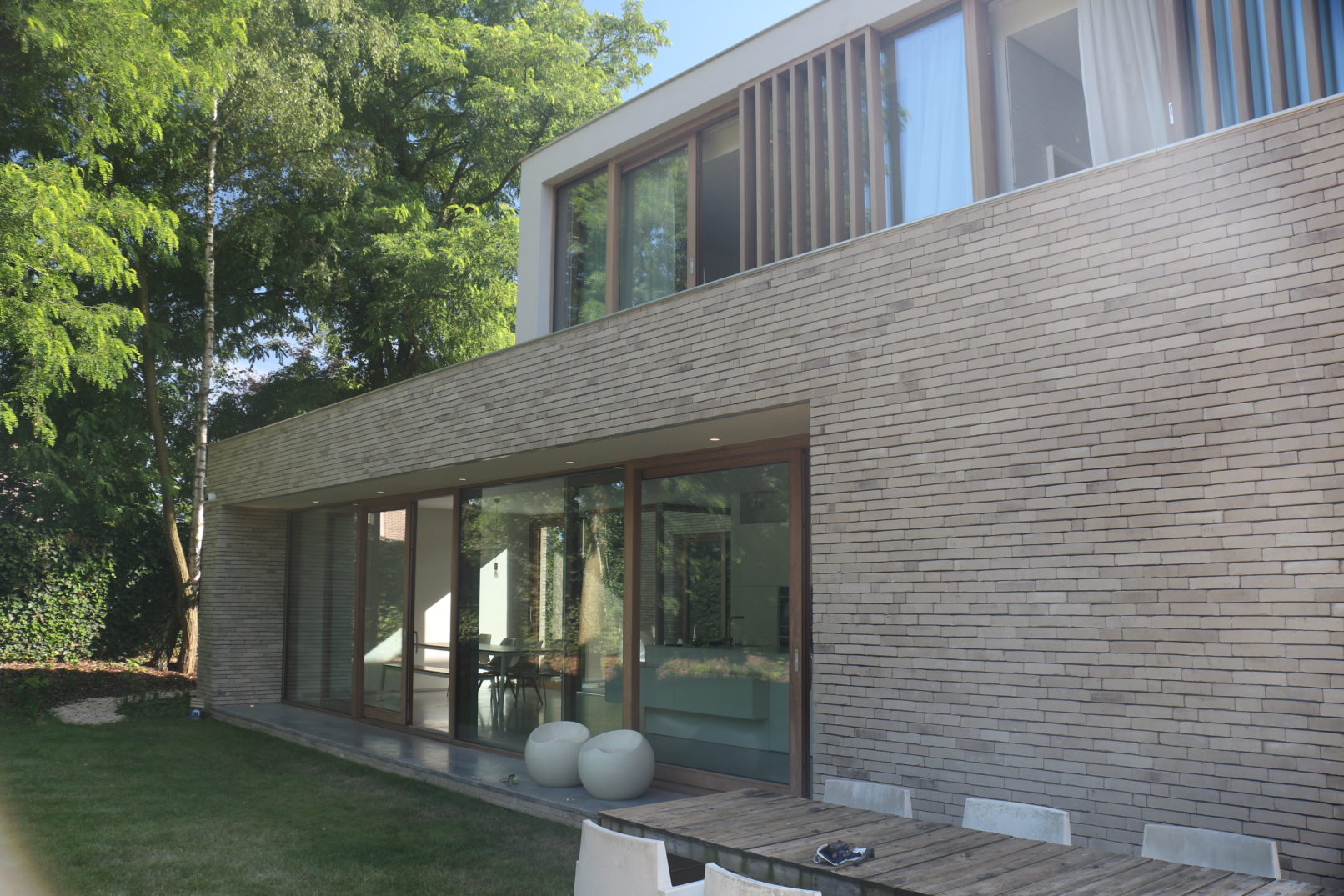 dit volume werd bewust beperkt en zo compact mogelijk gehouden. het gebruik van de houten lamellen zorgt aan de straatkant voor de nodige privacy ondanks de grote raampartijen.