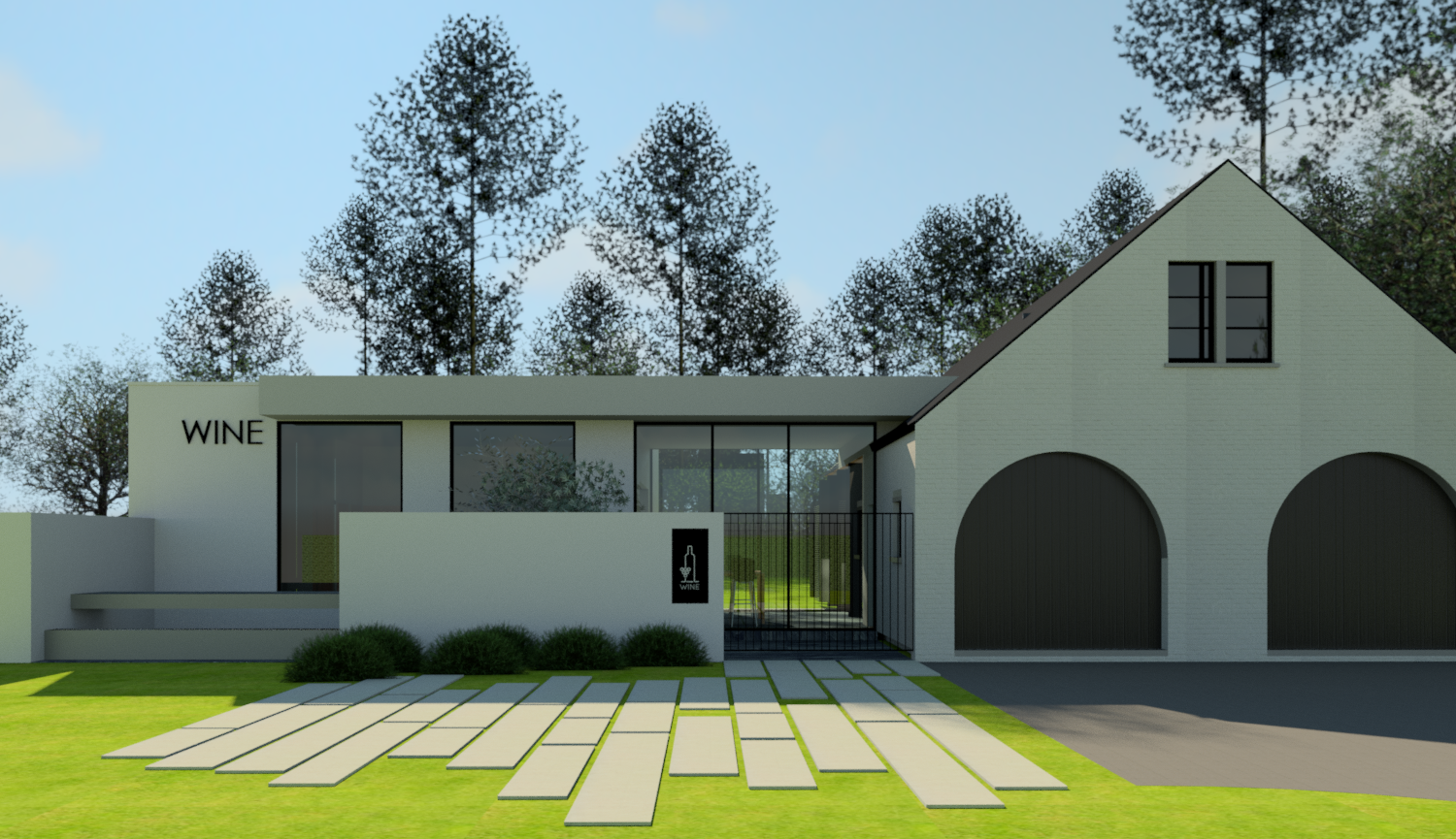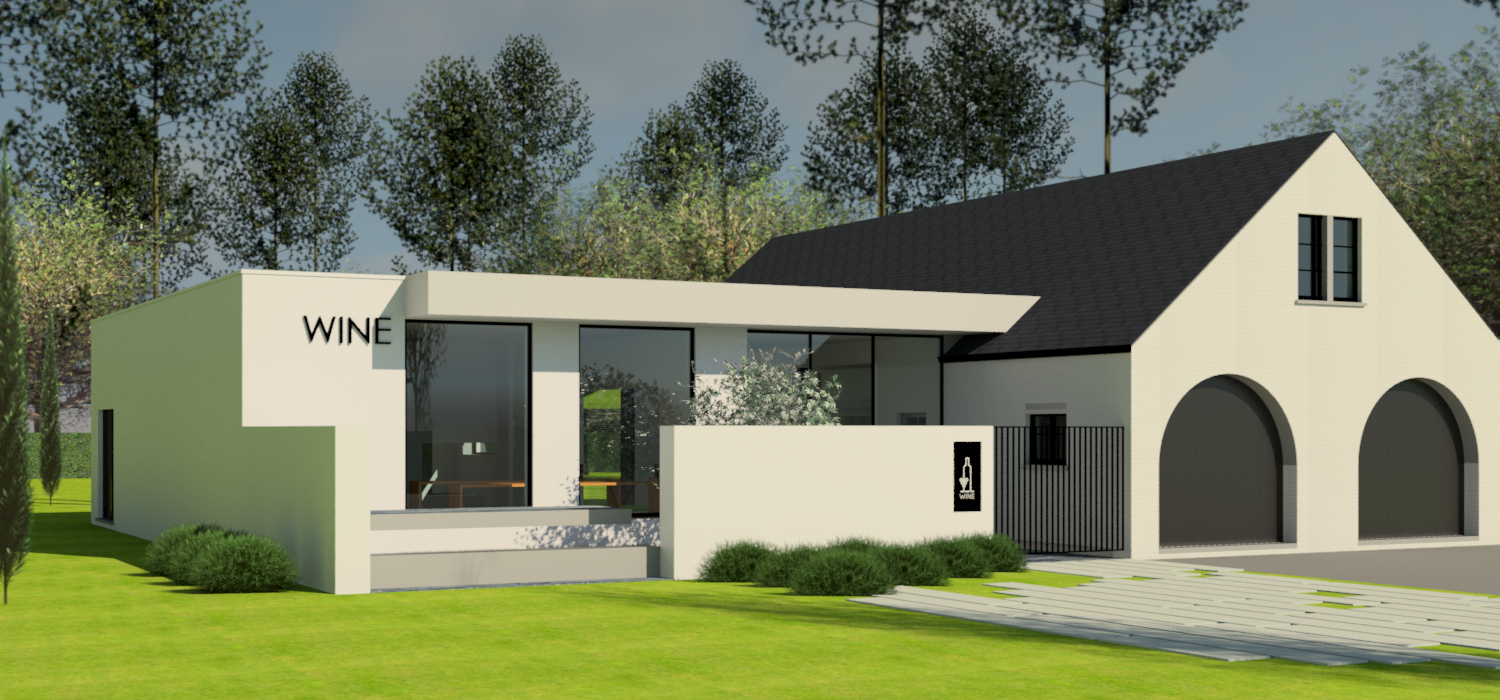 bestaande fermettewoning uit de jaren ’80 ondergaat een totale make-over. de kenmerken van het gebouw werden behouden bij het uitwerken van het ontwerp. het resultaat zal een moderne woning zijn met integratie van een wijnwinkel.